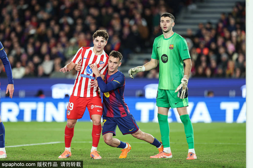 下半场开始,第51分钟,阿尔瓦雷斯小角度似传似射挑到门前,加西亚跳起将球没收。第53分钟,亚马尔送出斜传,拉菲尼亚左侧无人盯防的小角度推射偏出了一些。第58分钟,拉菲尼亚左路突进斜传找到莱万,可惜后者抢点稍慢错失良机。